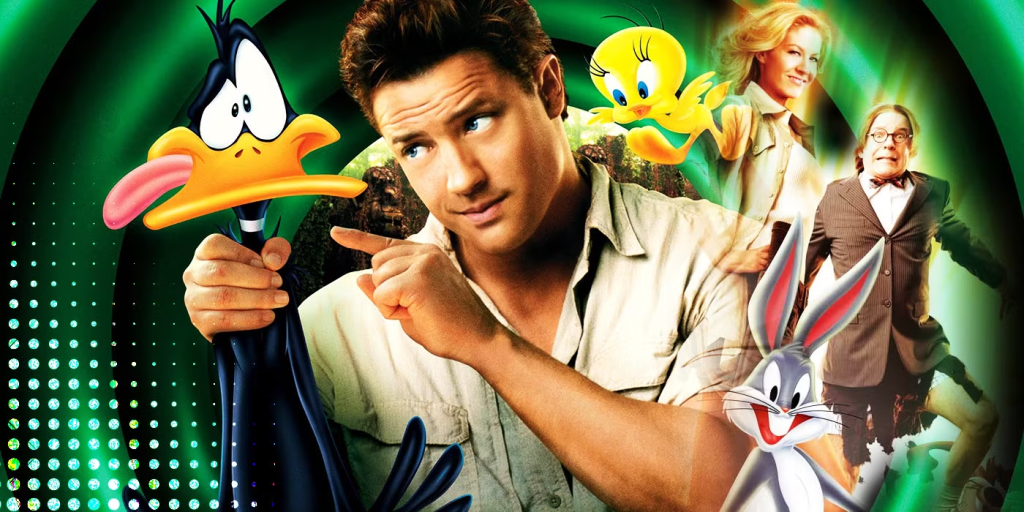 Brendan Fraser once again proves his gift for blending physical comedy with heartfelt heroics, bouncing effortlessly off Bugs and Daffy’s animated chaos. Jenna Elfman grounds the madness with sharp comedic timing, serving as the voice of reason in a world gone bananas. And Steve Martin steals the spotlight as Mr. Chairman, hamming it up with larger-than-life energy, delivering villainy so exaggerated it feels right at home in a cartoon universe.